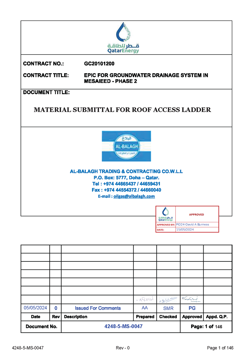 FABRICATION AND INSTALLATION OF ROOF ACCESS LADDER – GROUND WATER DRAINAGE SYSTEM IN MESAIEED – PHASE 2