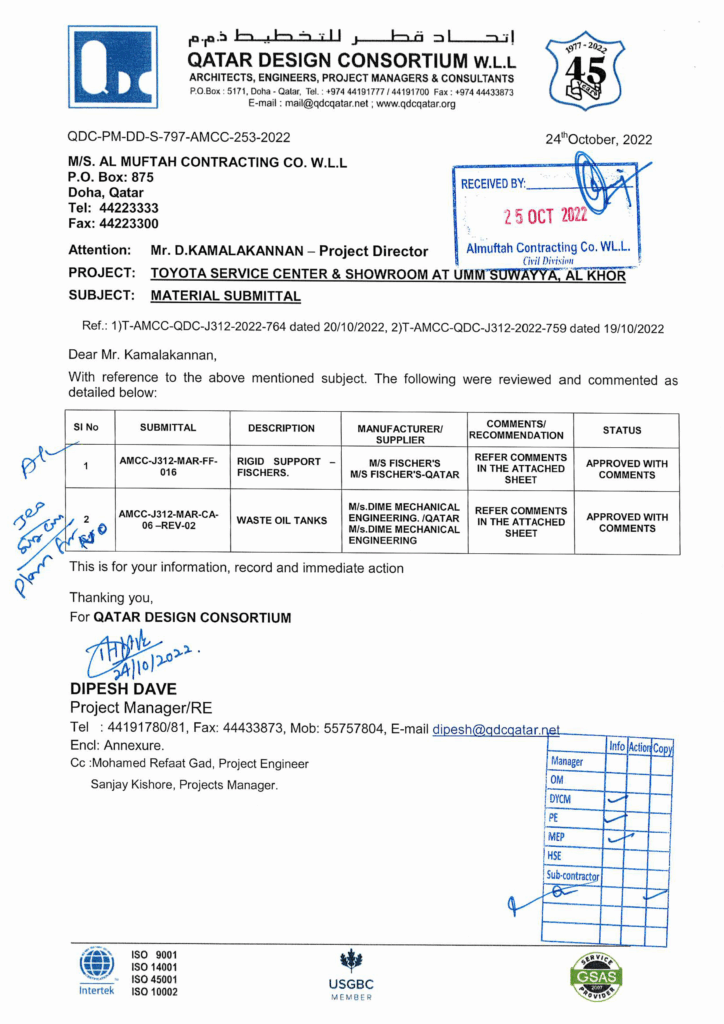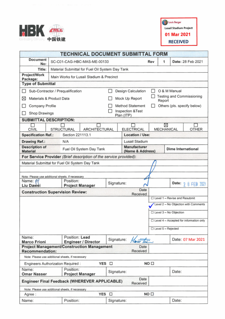 FABRICATION & SUPPLY OF DAY TANKS TO — QATAR SITE & POWERMAS & MIR APPROVALS