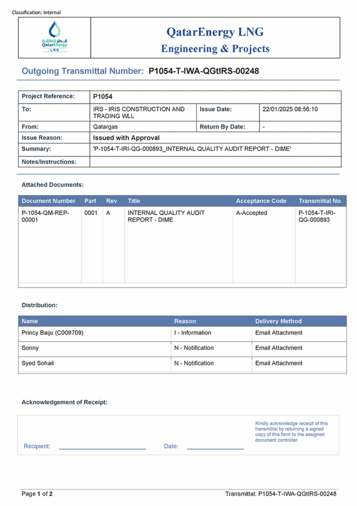 QATAR ENERGY INTERNAL AUDIT APPROVALPROJECT: NEW SECURITY RECEPTION BUILDING (QG NORTH)